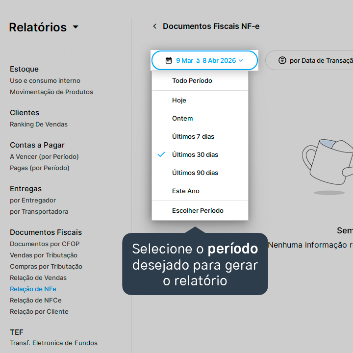 Aprenda a gerar uma relação das suas Notas Fiscais Eletrônicas emitidas no período que desejar.