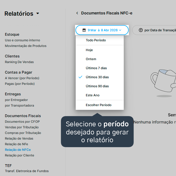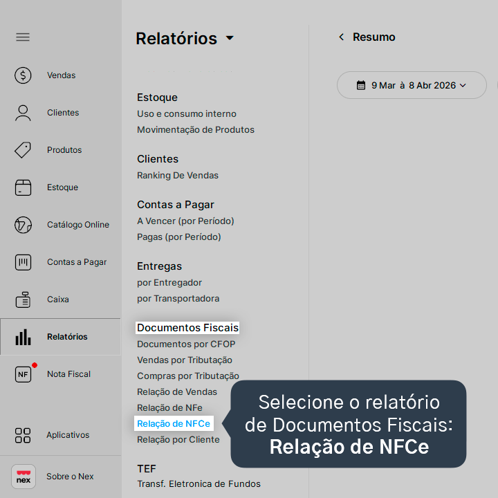 Pronto! Você aprendeu a gerar relatório de relação de NFC-e.