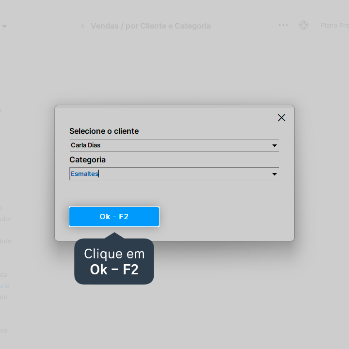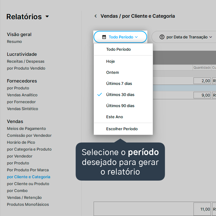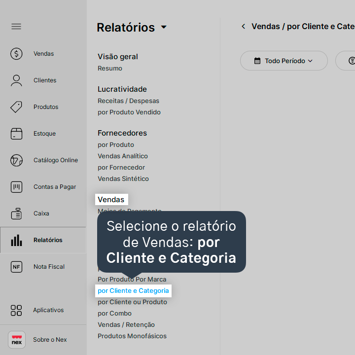 2. Selecione o relatório de vendas: por Cliente e Categoria.