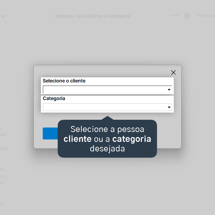 3. Selecione a pessoa cliente e/ou a categoria que deseja visualizar.