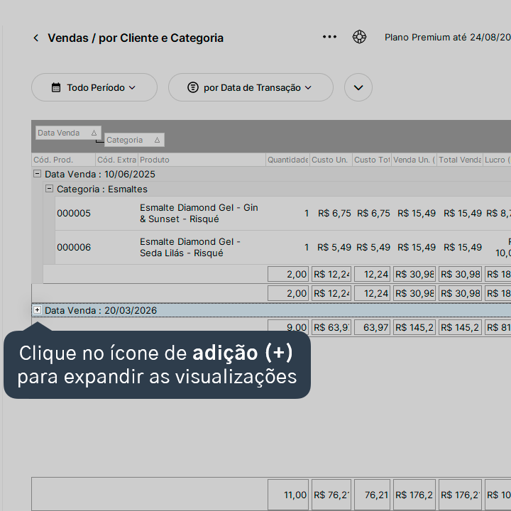 Aprenda a visualizar os produtos vendidos agrupados por cliente e/ou categoria.