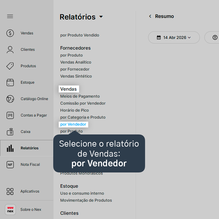 Aprenda a visualizar as vendas registradas no Nex, agrupado pelos vendedores (usuários) cadastrados no sistema.