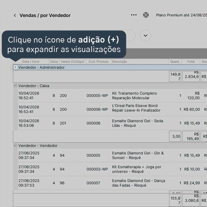 4. Clique no ícone de adição (+) ao lado da pessoa vendedora desejada para expandir as visualizações.