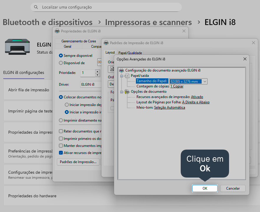 Se a sua impressora está cortando o comprovante antes de finalizar a impressão, é necessário mudar a configuração de corte no driver de instalação. Essa configuração pode variar de acordo com a marca e o modelo da impressora, mas geralmente são configurações semelhantes.