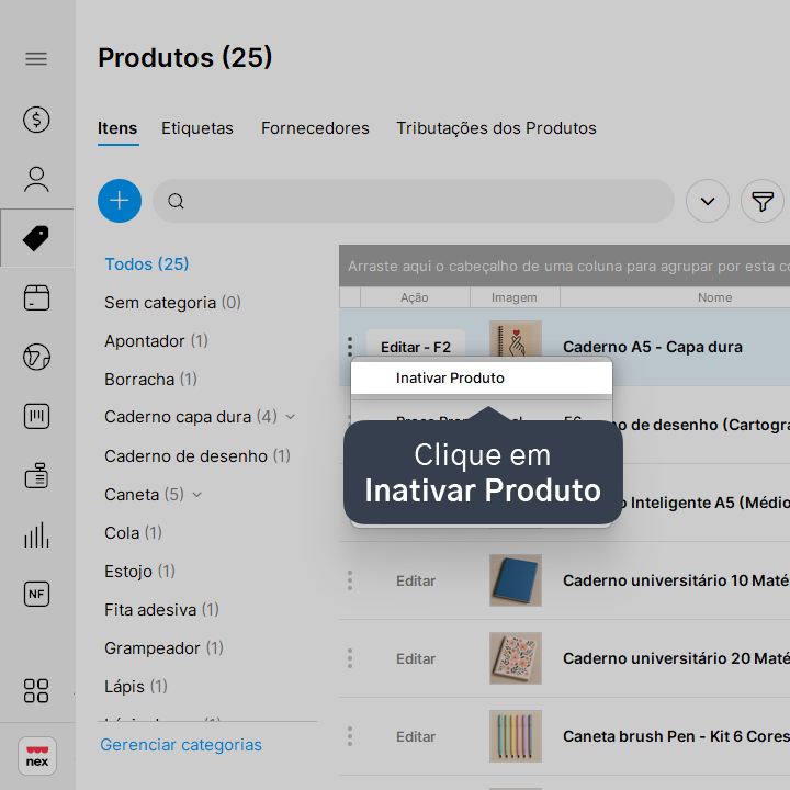 Veja como é fácil inativar aquele produto que você não comercializa mais no Nex. Esse recurso pode ser utilizado quando o programa não permitir a exclusão do produto.