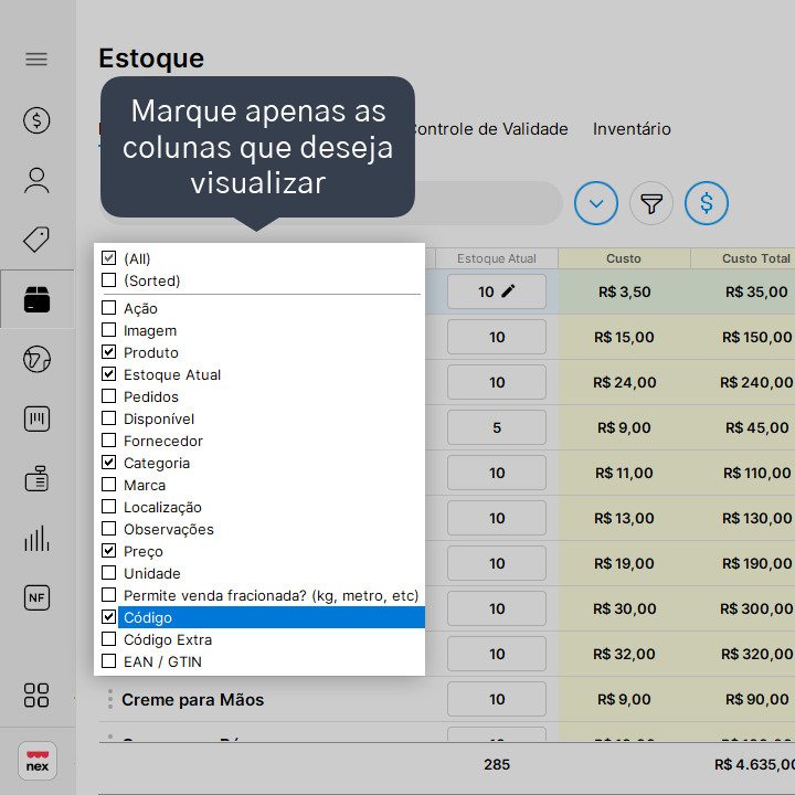 Pronto! Agora você tem mais informações sobre o seu estoque atual. Clique aqui e veja como exportar informações do Nex.
