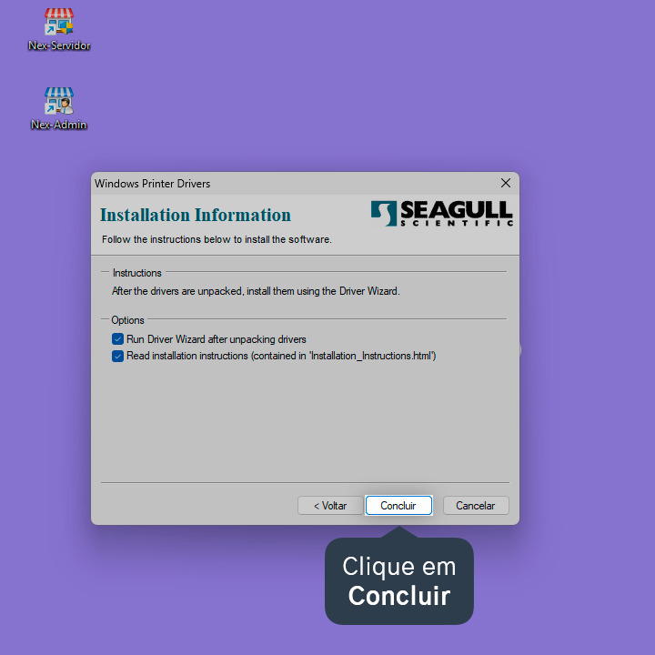 11. Clique em Concluir e aguarde o processo de instalação.