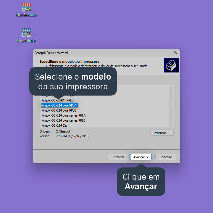 8. Selecione o modelo da sua impressora e, em seguida, clique em Avançar.
