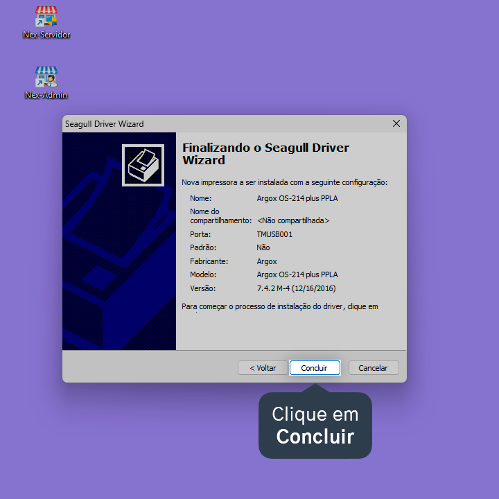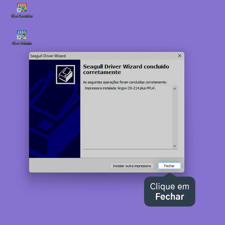 Pronto! A impressora Argox OS 214 Plus foi instalada no Windows.