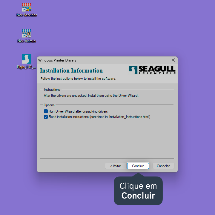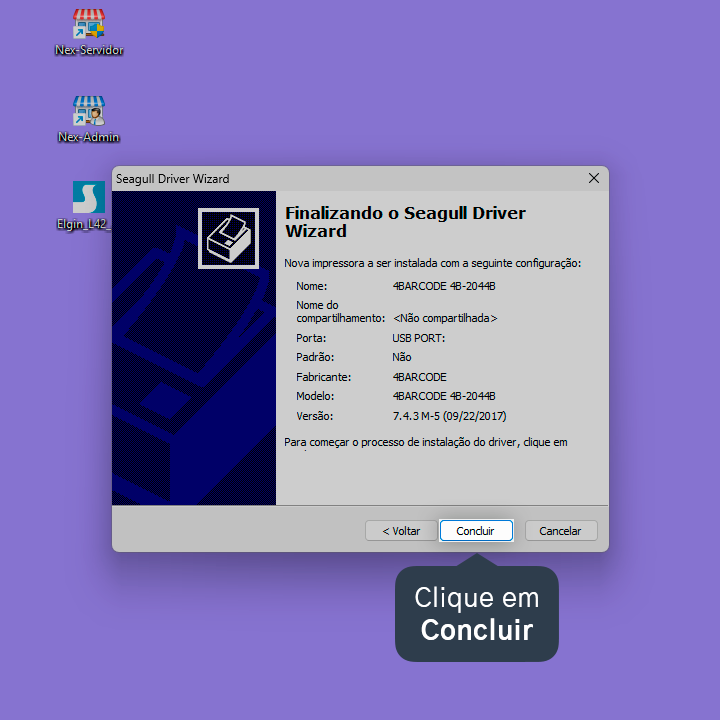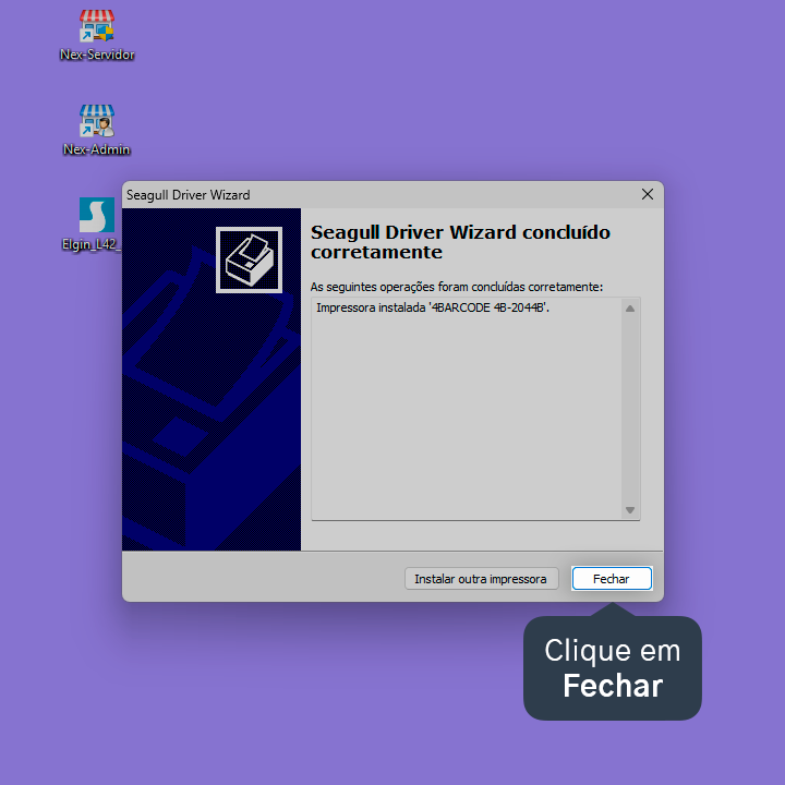 Pronto! A impressora Elgin L42 DT foi instalada no Windows.