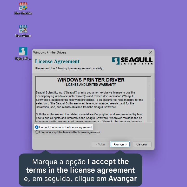 3. Selecione a opção I accept the terms in the license agreement e, em seguida, clique em Avançar.