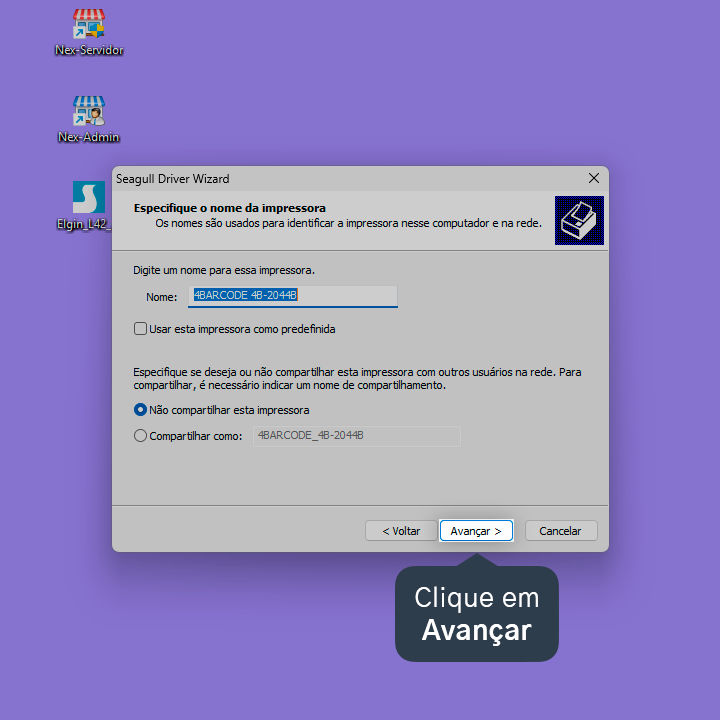 10. Se desejar, altere o nome da impressora. Clique em Avançar.