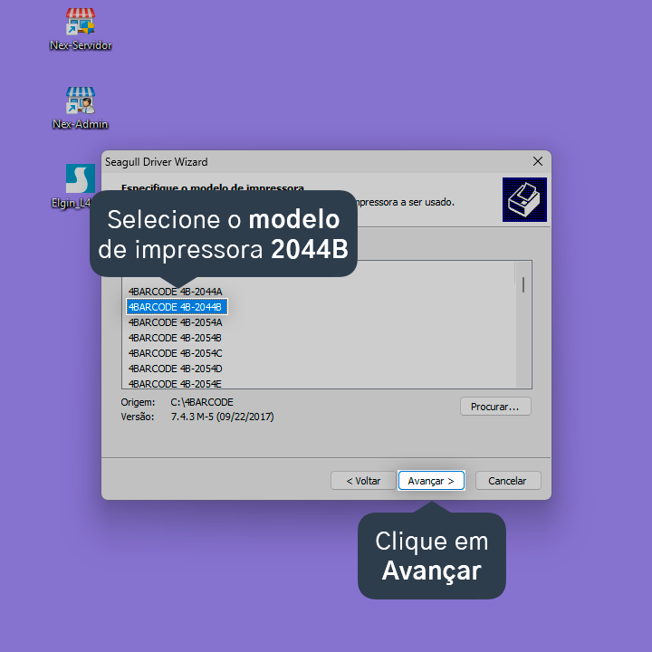8. Selecione o modelo de impressora 2044B e, em seguida, clique em Avançar.
