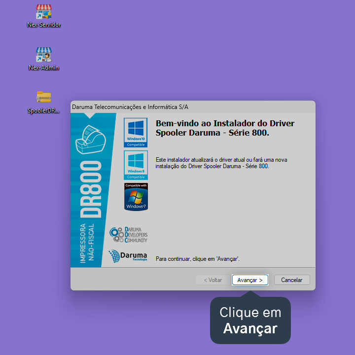 Para utilizar a impressora Daruma DR800, é necessário instalar dois arquivos. O primeiro é o Driver_Spooler_800 que é utilizado para que o Windows reconheça o cabo conectado da impressora e o segundo é o Driver_DR800 que é o driver de configuração da impressora.
