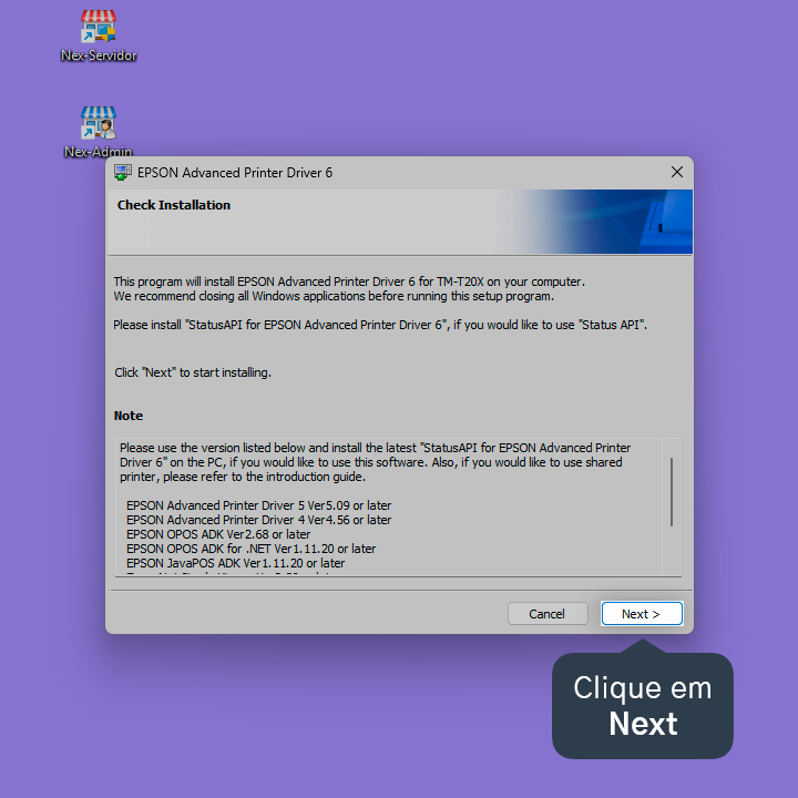 1. Faça o download do driver da impressora Epson TM-T20 clicando aqui.