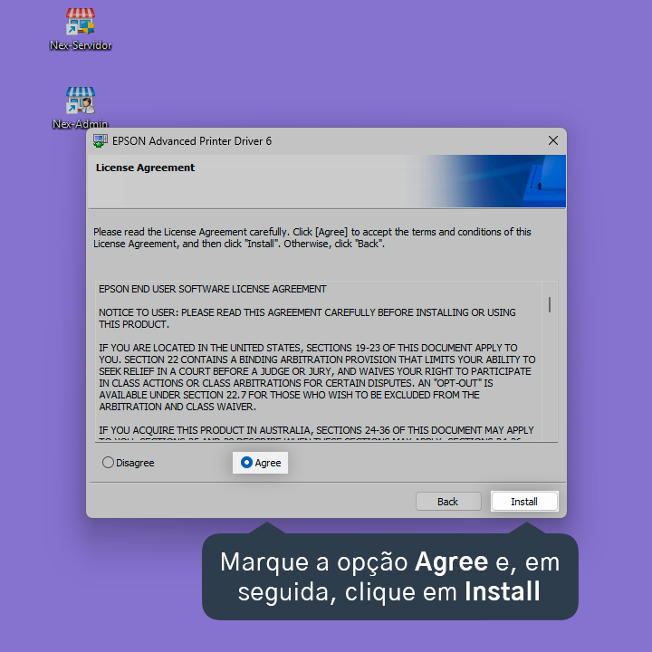 4. Marque a opção Agree e, em seguida, clique em Install.
