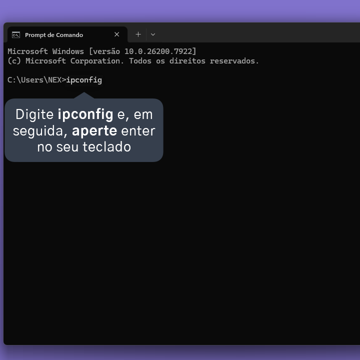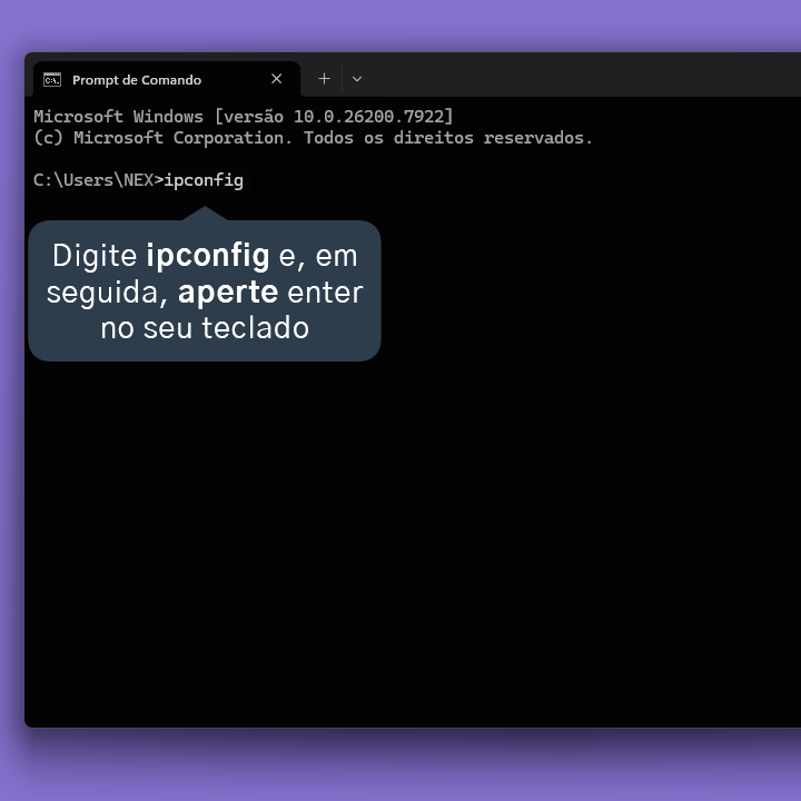 3.3. Digite ipconfig e, em seguida, aperte enter no seu teclado.