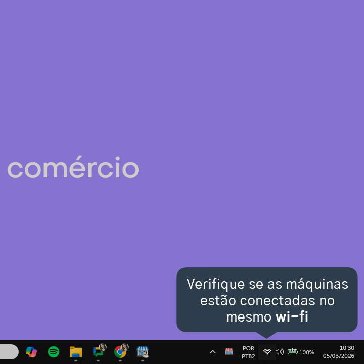 3.1. Caso você utilize os computadores conectados via wi-fi, verifique se ambos estão na mesma rede clicando no símbolo do wi-fi no canto inferior direito.