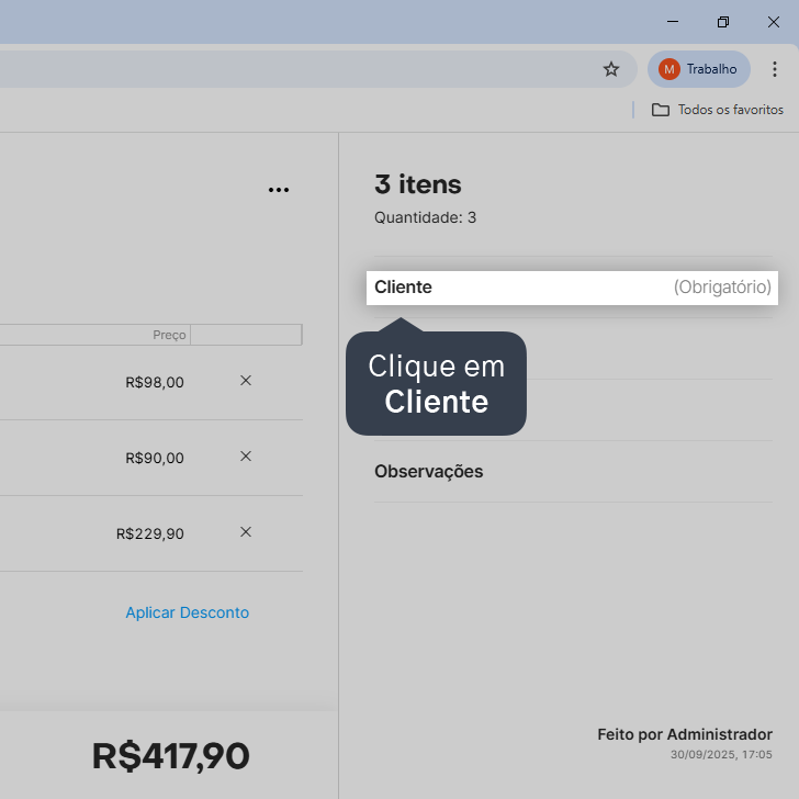 4. Clique em Cliente, para informar o cliente que solicitou o orçamento.