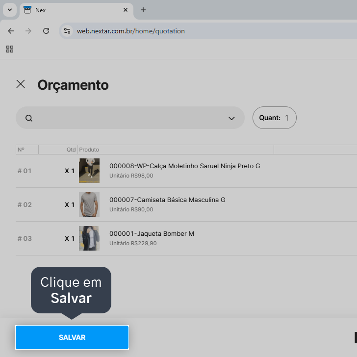 Pronto! Você aprendeu a gerar um orçamento para o seu cliente pelo Nex na Web.