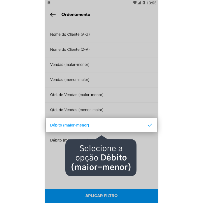 Vamos aprender a filtrar e ordenar os clientes de acordo com o valor em débito (valor pendente de pagamento) utilizando o aplicativo de vendas do Nex.