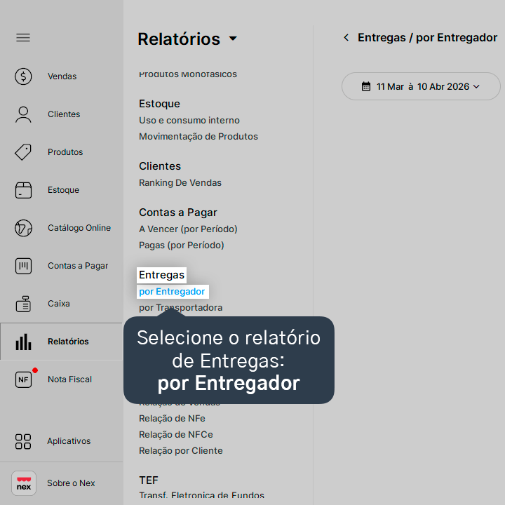 Aprenda a gerar um relatório com a relação das suas vendas com entregas registradas por pessoas entregadoras.