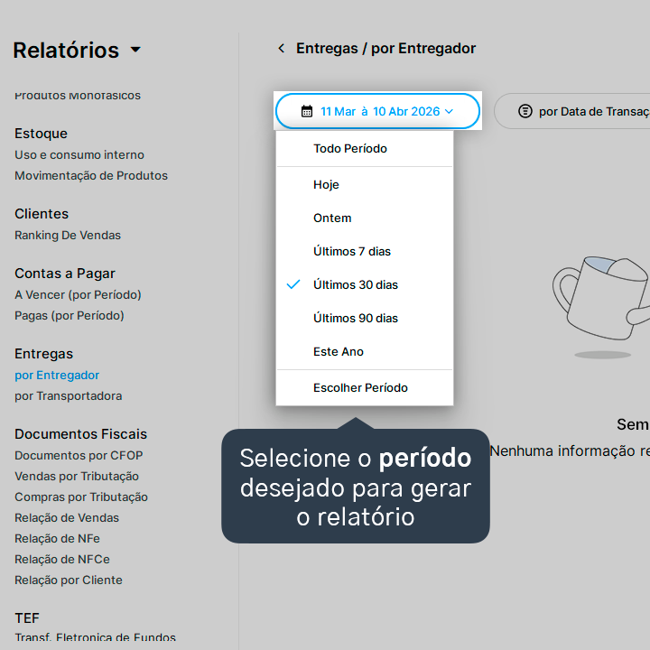 3. Selecione o período desejado para gerar o relatório.