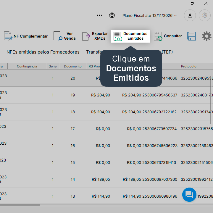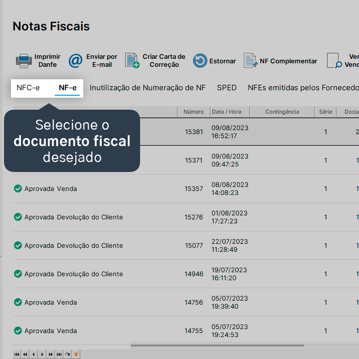 2. Clique no documento fiscal que você deseja gerar o relatório.