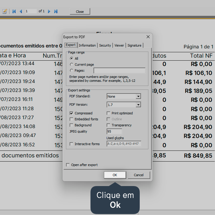 Este relatório exibe os documentos fiscais emitidos no período selecionado. Nele você consegue verificar a data e hora da transação, o número de transação, o número da nota fiscal, o valor dos produtos, o valor total da Nota Fiscal e a somatória dos documentos emitidos. Esse relatório normalmente é solicitado pela contabilidade.