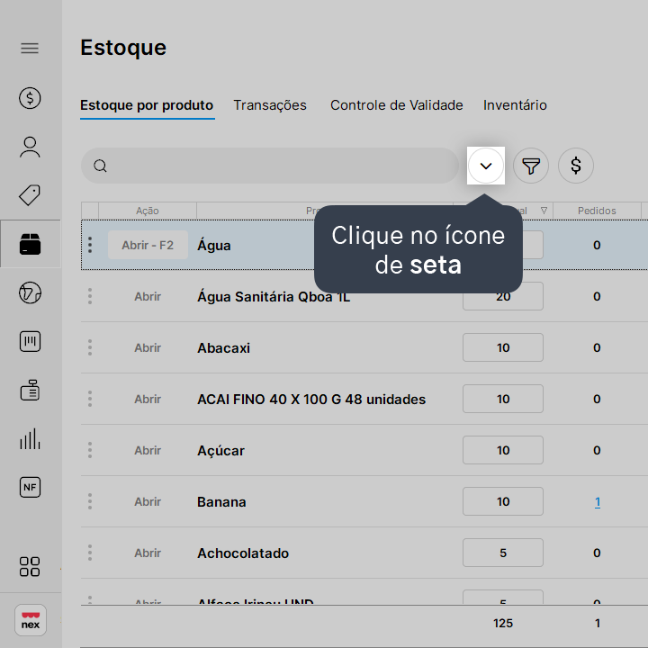 1. Na tela de Estoque, acesse a aba Estoque por produto.