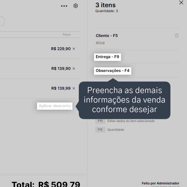 2. Se necessário, clique em Cliente - F5 para vincular um cliente a esta venda.