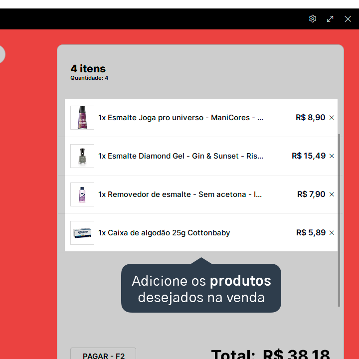 2. Adicione os produtos na venda.
