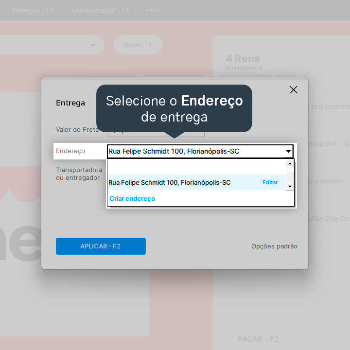 6. Selecione o Endereço de entrega.