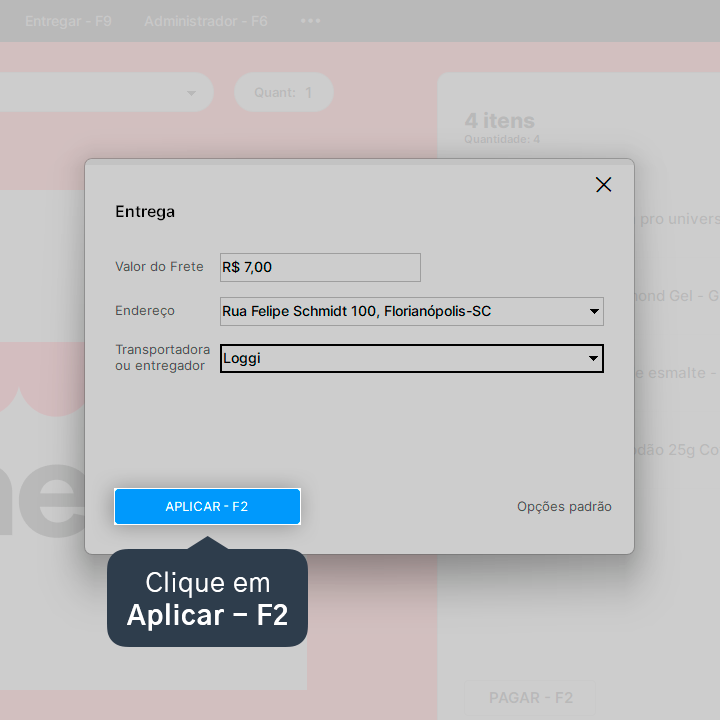 4. Clique em Entregar - F9 para adicionar as informações de entrega.