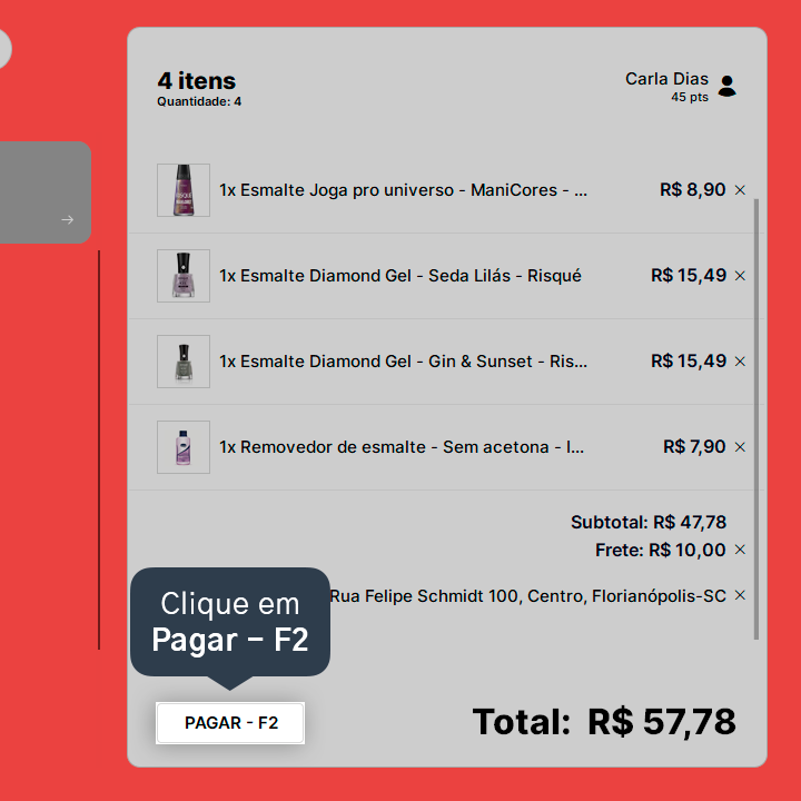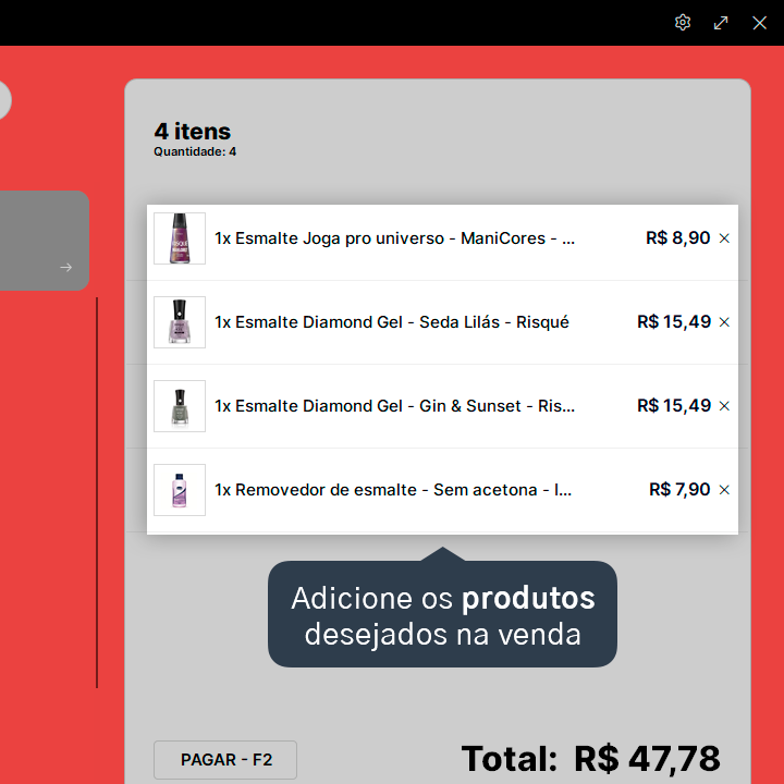 2. Adicione os produtos na venda.