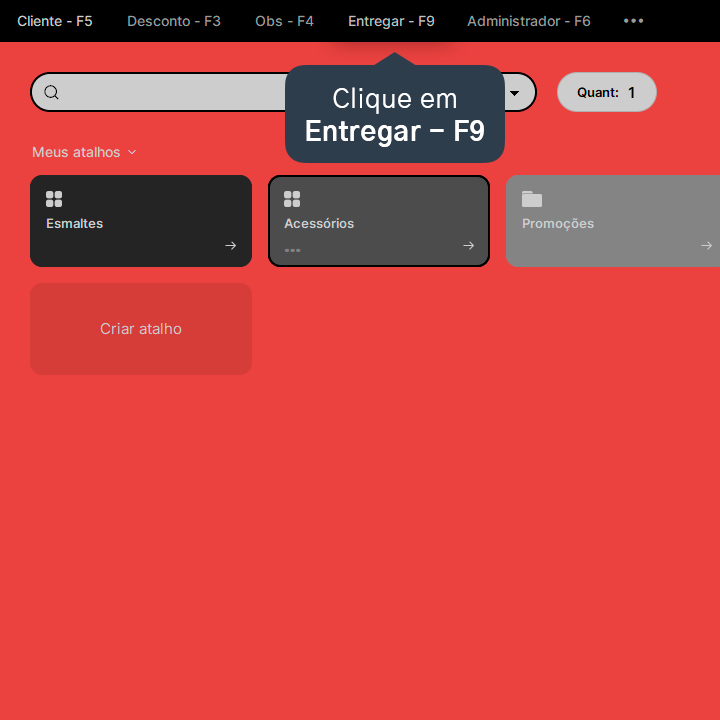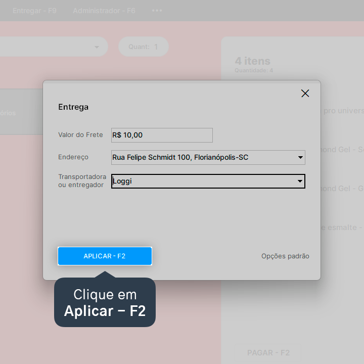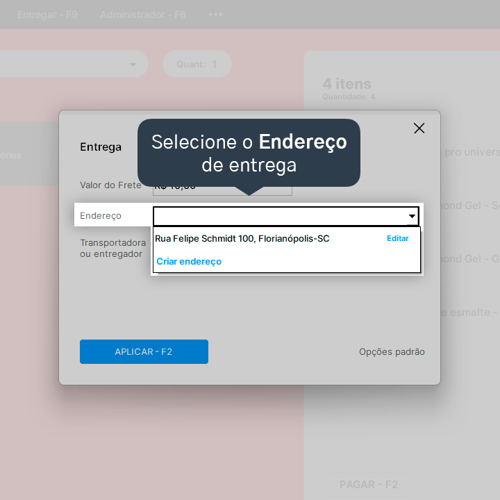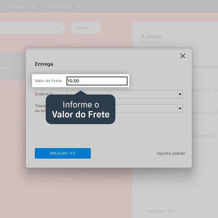 4. Clique em Entregar - F9 para adicionar as informações de entrega.